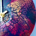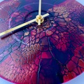 Det smukke vægur med det organiske unika-maleri i mørkerød, mørkeblå, pink og karamel er malet på singlen "Hungarian Dances" af Brahms, opført af Vienna Festival Orchestra dirigeret af David Josefowitz. Til en eksklusiv og personlig indretning.