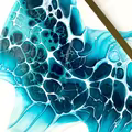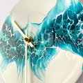 Det eksklusive unika vægur med det organiske maleri i changerende blågrønne nuancer er malet på singlen "English Course, Lesson 29" fra The Linguaphone Institute. Udtryksfuld og dragende som et oprørt hav.