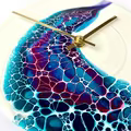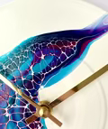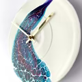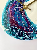 Det elegante unika vægur med det organiske maleri i grønblå og lilla er malet på singlen "English Course, Lesson 27" fra The Linguaphone Institute. Harmonisk og iøjnefaldende.