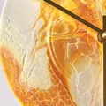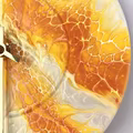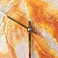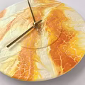 Det dramatiske unika vægur med det organiske maleri i varm orange og gul er malet på singlen "English Course, Lesson 29" fra The Linguaphone Institute. Temperamentsfuld og dragende.