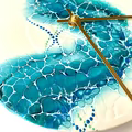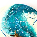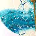 Det smukke unika vægur med det organiske maleri i changerende grønblå er malet på singlen "Eine kleine Nachtmusik" af Mozart, opført af The Vienna Festival Orchestra, dirigeret af David Josefowitz. Dragende som brusende bølger i havet.