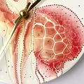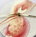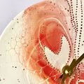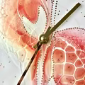 Det elegante unika vægur med det organiske maleri i sart rød, orange og gul er malet på singlen ”Hold ud – en dag helt for os selv” af Nanna. Smuk som en lysende sommerhimmel.